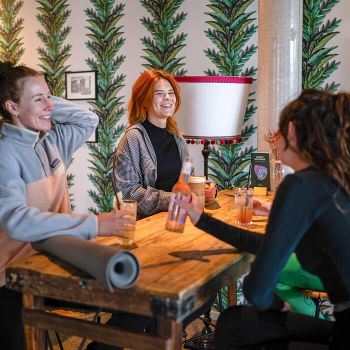 Erfrischt euch nach der Yoga-Lektion mit einem leckeren tibits-Drink oder bleibt gleich zum Schlemmen vom Buffet.