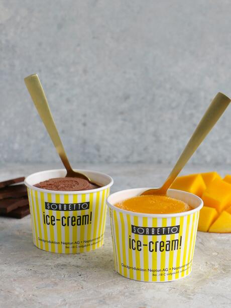 Bei uns im tibits findet ihr das Sorbetto Choco, Sorbetto Mango (V) und das Sorbetto Fior di Latte. Die Milch für das Fior di Latte stammt vom Brüderhof in Dällikon und ist Bio-zertifiziert.