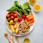 - Die Kichererbsen abtropfen, mit dem Gemüse auf ein mit Backpapier belegtes Backblech geben und gut vermischen. Korianderpulver, Olivenöl sowie Salz und Pfeffer über das Gemüse geben. Im Ofen bei 180 Grad ca. 15-20 Min. backen.