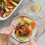 - Den Saft der Zitrone auspressen und nach dem Backen über das warme Gemüse geben.
